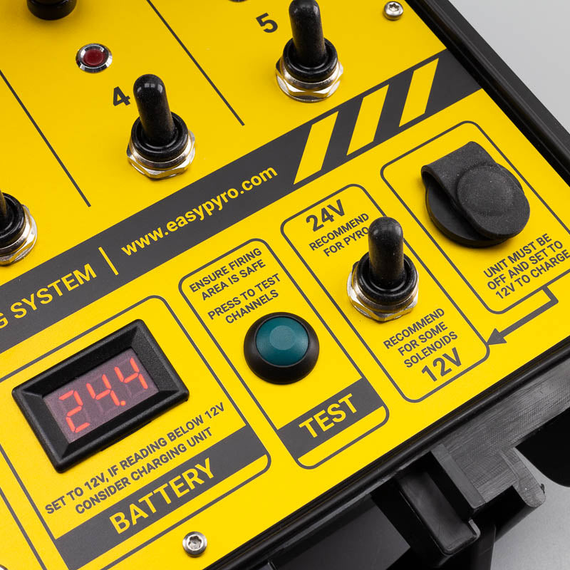 Control 12V and 24V pyro and solenoids at the flick of a switch.