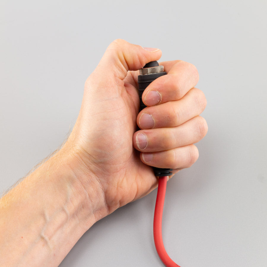 The Deadman Switch provides extra safety by enabling a constant operator input for the TX2 Control Desk. The ergonomic Deadman Switch also allows convenient one handed operation and will stop any automatic operations (Sequence or Scripted Firing) when released.