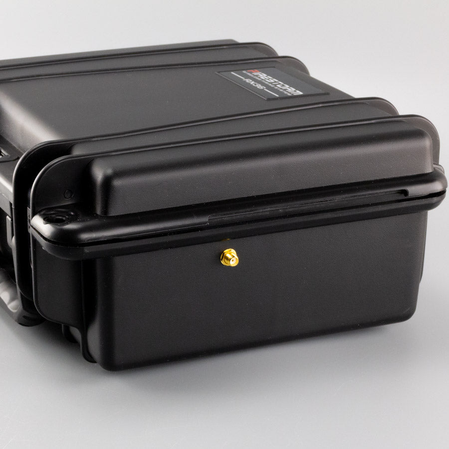 The firing module is built into a small, rugged case as standard. No other protection is required. Slots allows the lid close safely on the igniter wires, protecting the module from rain and falling debris.