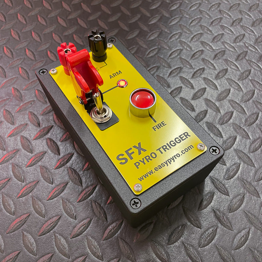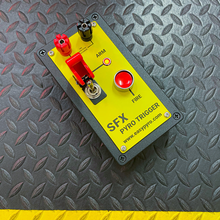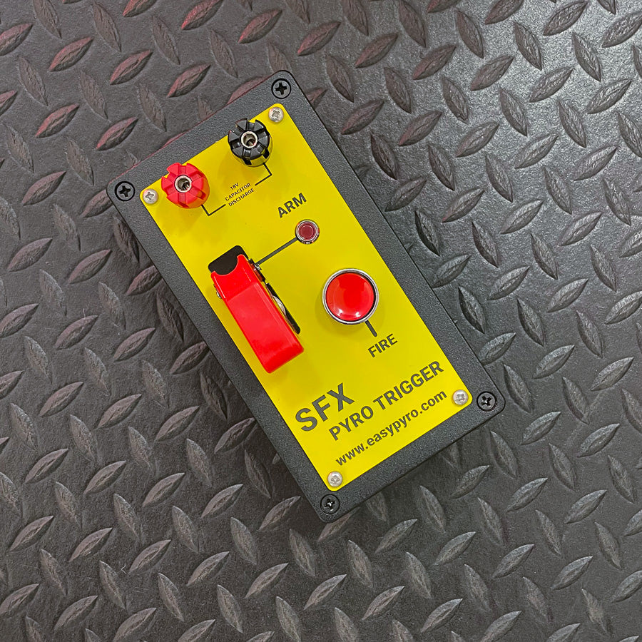 Built to be extremely rugged, the single channel Pyro Hit Box boasts a solid aluminium enclosure, simple controls and a large, protected fire button.
